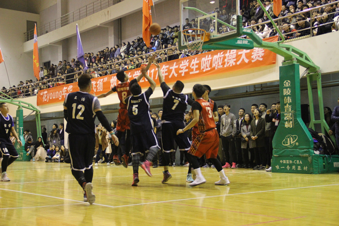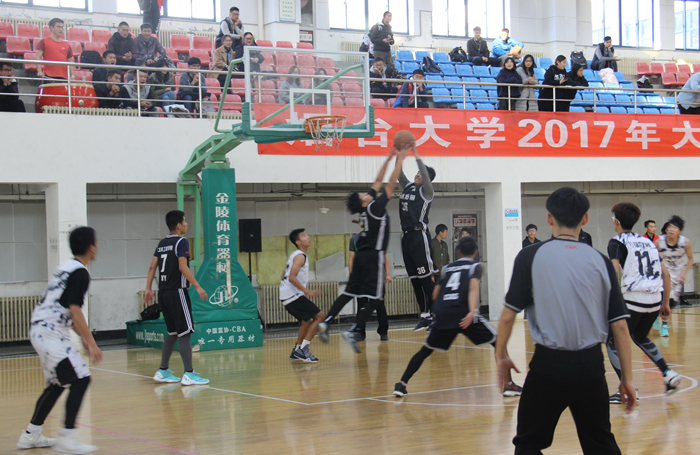 11月12日晚,大學生活動中心籃球場燈火通明、人聲鼎沸,喝彩聲、加油聲此起彼伏,煙臺大學2017年大學生秋季籃球賽決賽正在這里舉行。
