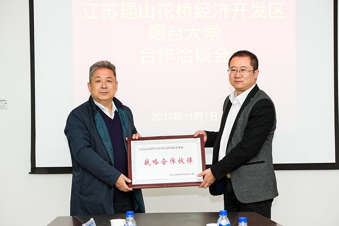 孫祥斌對江蘇昆山花橋經(jīng)濟(jì)開發(fā)區(qū)組織人事局來訪表示歡迎并簡要介紹了學(xué)校辦學(xué)相關(guān)情況;昆山花橋經(jīng)濟(jì)開發(fā)區(qū)組織人事局王有軍介紹了昆山花橋經(jīng)濟(jì)區(qū)基本情況、創(chuàng)新創(chuàng)業(yè)開展情況以及人才引進(jìn)優(yōu)惠政策。雙方共同簽署了《江蘇昆山花橋經(jīng)濟(jì)開發(fā)區(qū)組織人事局、煙臺(tái)大學(xué)合作協(xié)議》,在人才輸送、共建實(shí)習(xí)基地、舉辦校園招聘、創(chuàng)業(yè)項(xiàng)目孵化等方面達(dá)成一系列合作意向。