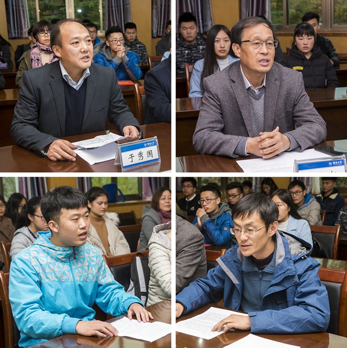 教師代表、?!皫煹聵吮?、光電信息科學技術學院晉剛老師代表教職工發言,勉勵受助學生傳遞愛心,學會感恩。人文學院程前代表全體受助學生表達了對學校和老師們的感激之情和克服困難努力成才的決心。